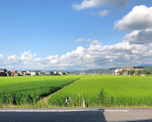 家の前には、コシヒカリの田んぼが広がっています。